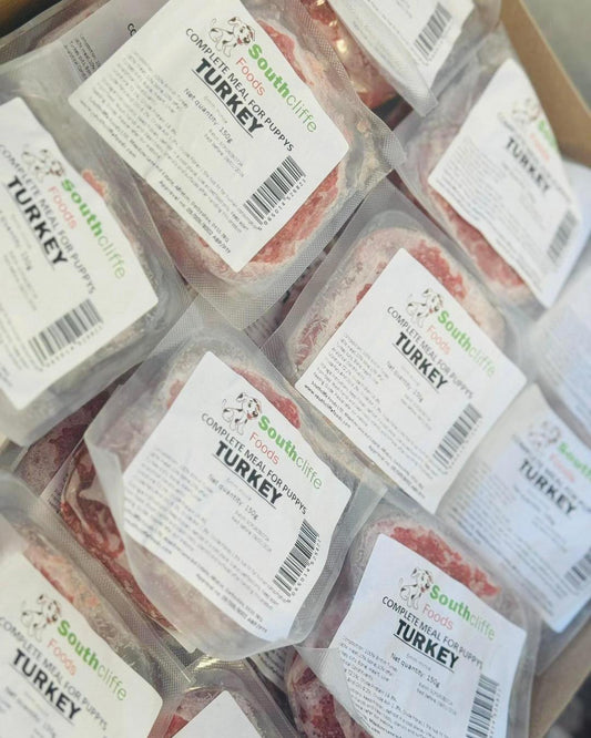 Lean and protein-packed, our turkey range is perfect for dogs that need a lighter protein option. Turkey is rich in essential amino acids and nutrients such as riboflavin and phosphorus, supporting muscle growth and overall health. As the only official stockist of Southcliffe Raw Dog Food in Dorset, our turkey minces are of the highest quality, free from artificial additives.