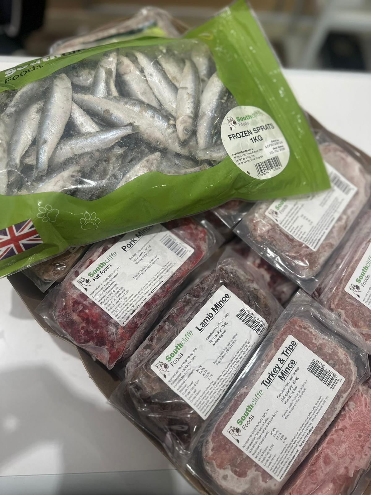 1 Box of Southcliffe Frozen Raw Dog Food + 1 Bag of Southcliffe Sprats